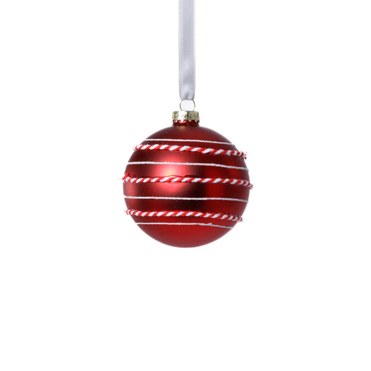 Matte Glass Ornament w/Rope Detail - Red