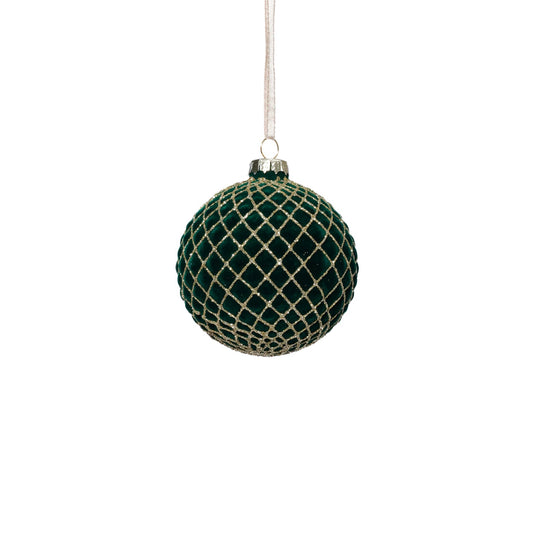 Green Flocked Glass Ball Ornament with Gold Glitter