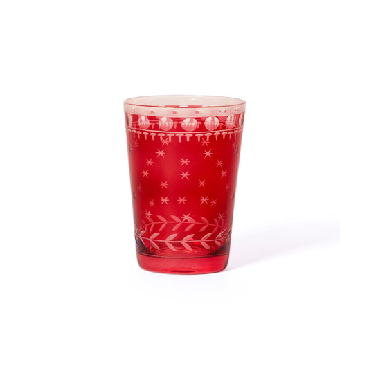 Hand Cut Glass / Tealight Holder - Red
