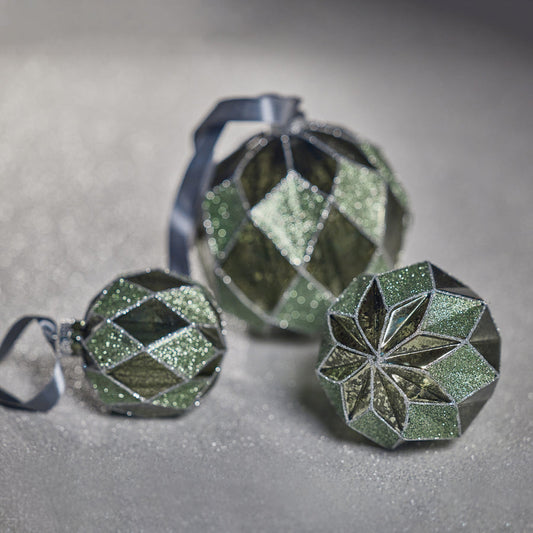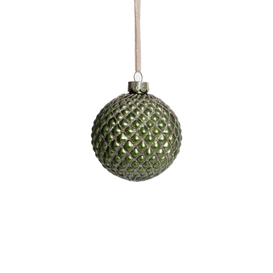 Matte Frosted Whisper Glass Ornament - Green & Gold