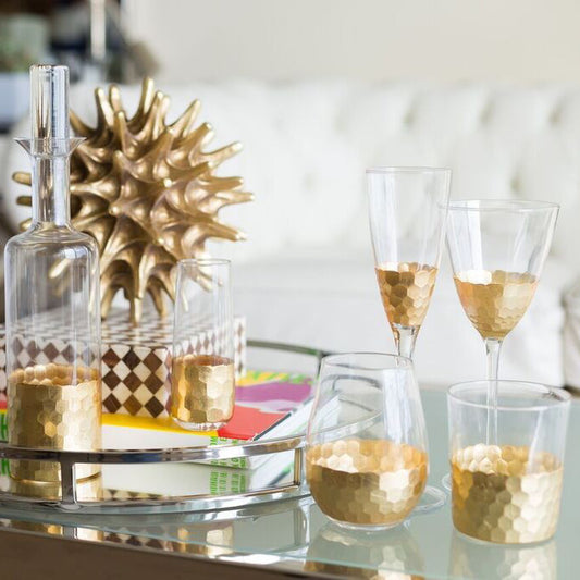 Stemless Glass w/ Gold Leaf - Gold - Set of 6