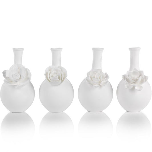 Cameo Long Neck Porcelain Bud Vases - Set of 4