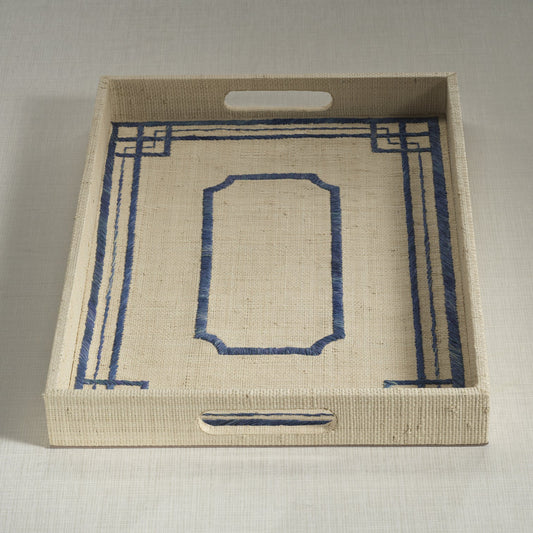 Coral Lagoon Natural Fiber Raffia Serving Tray
