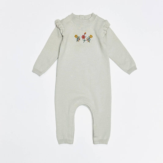 Floral Embroidered Ruffle Baby Sweater Jumpsuit (Organic)