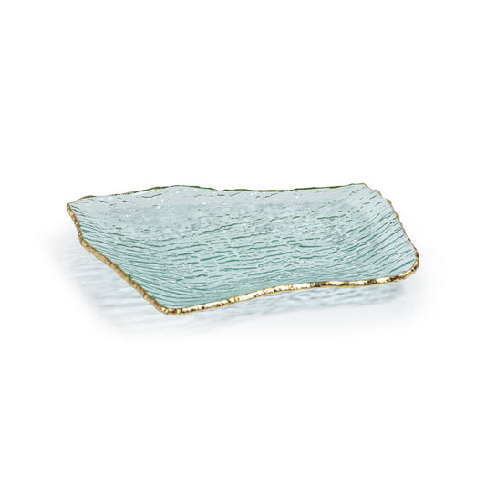 Textured Rectangular Organic Shape Plate w/Jagged Gold Rim