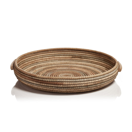 Agrari Abaca Silk Woven Cane Round Tray - Blue