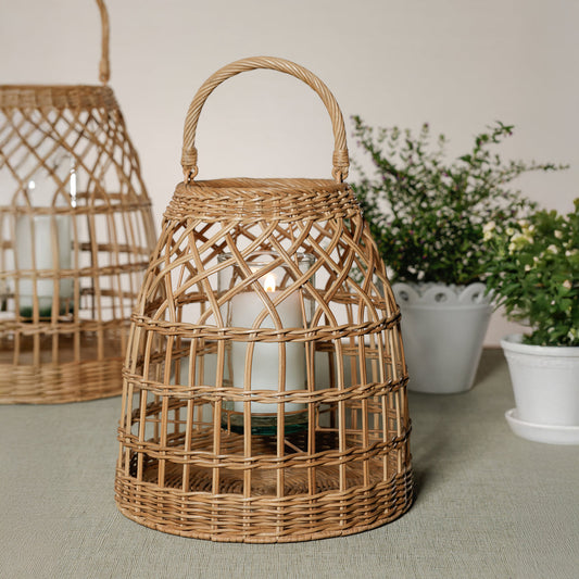 Nappa Woven Leather Glass Vase / Hurricane - Cream