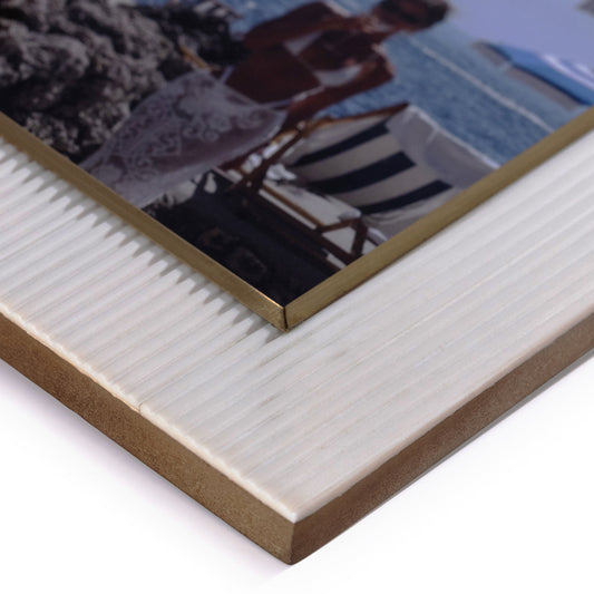 Bossa Ribbed White Resin Photo Frame with Brass Inside Border