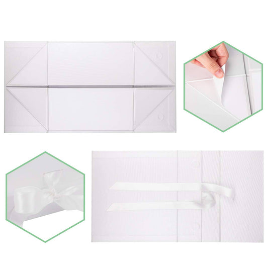 8" x 8" x 4" Collapsible Gift Box w/ Satin Ribbon & Magnetic | White