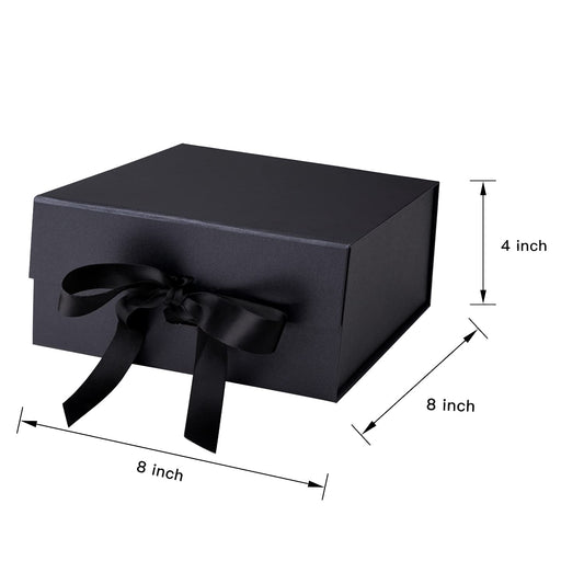 8" x 8" x 4" Collapsible Gift Box w/ Satin Ribbon & Magnetic | Black
