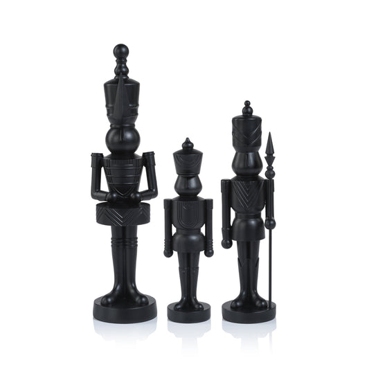 Set of 3 Assorted Resin Soldiers - Matte Black