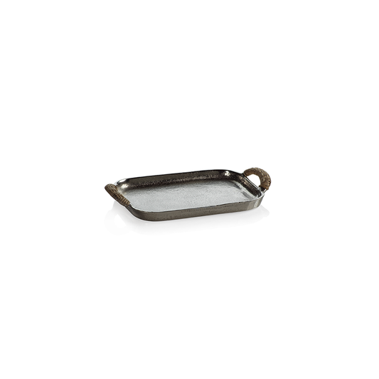 Mauritius Raw Aluminum Tray w/Cane Wrapped Handles