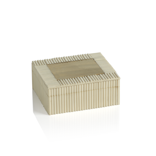 Antique Bone Coaster Set in Metal Tray - Brown & Gold