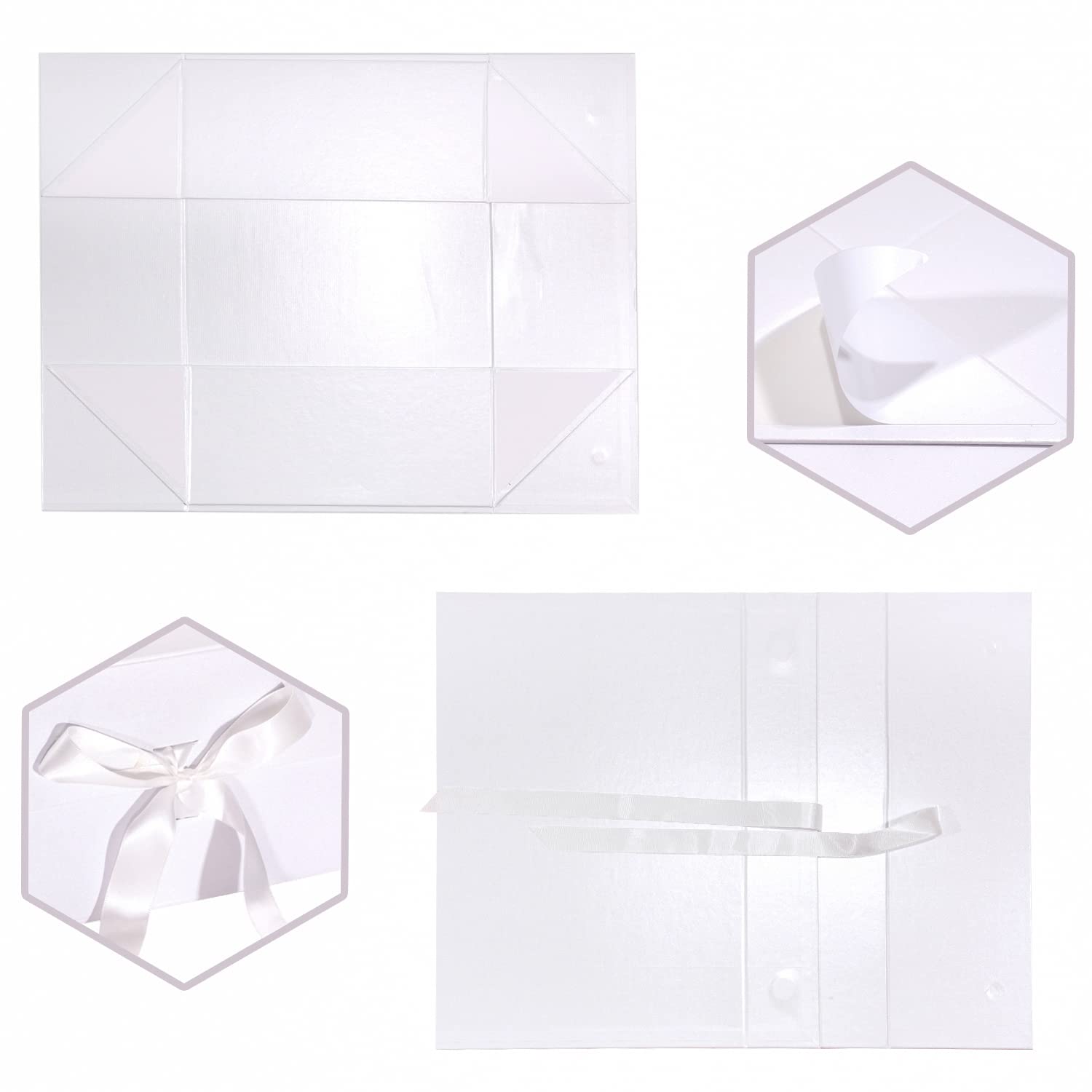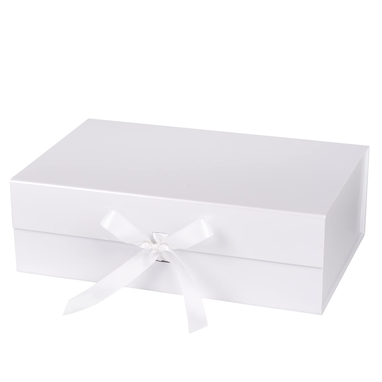 14" x 9" x 4.3" Collapsable Gift Box w/ Satin Ribbon & Magnetic Square Flap Lid | White
