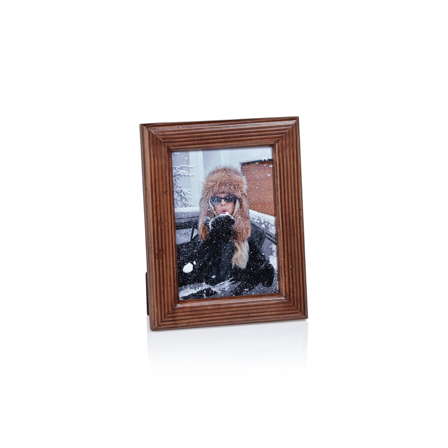 The Alpenloge Leather Photo Frame - Tobacco features a rich tobacco leather finish with subtle ribbed detailing, offering timeless sophistication. Perfect for displaying your cherished memories, this frame adds a touch of elegance to any space.