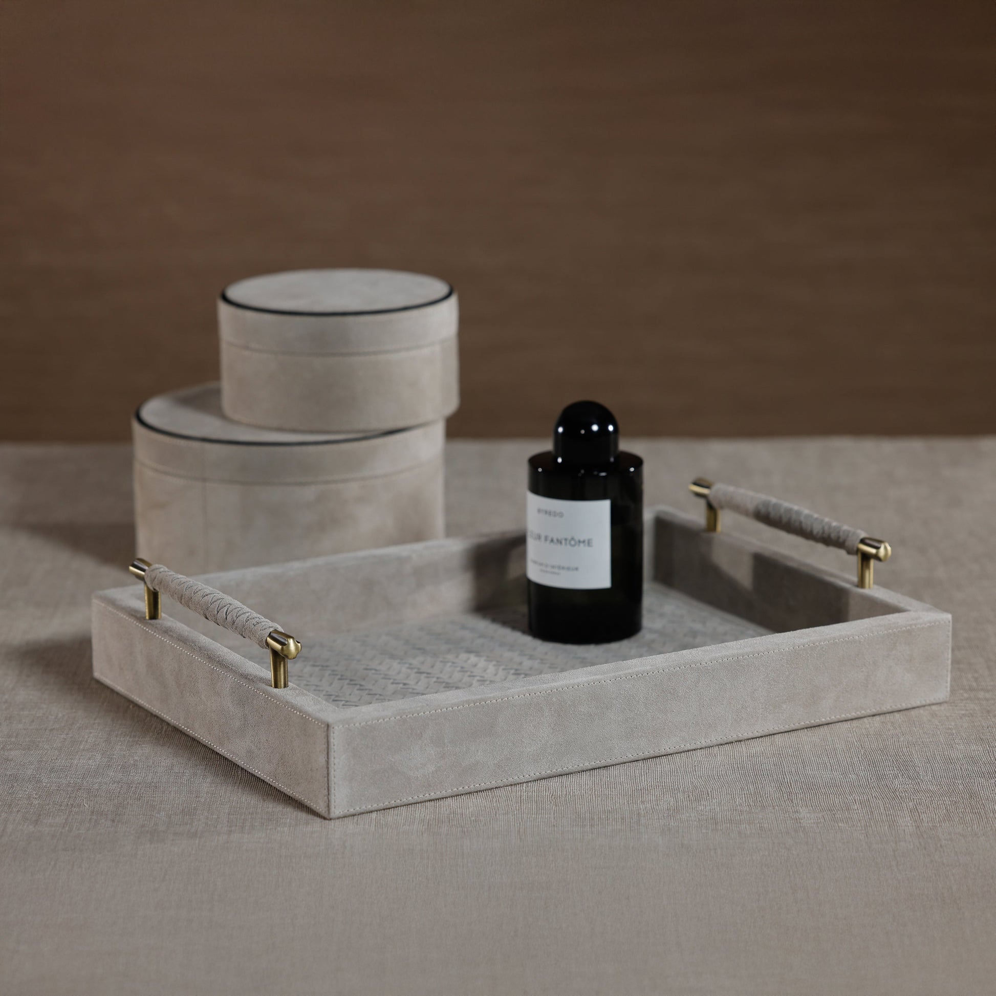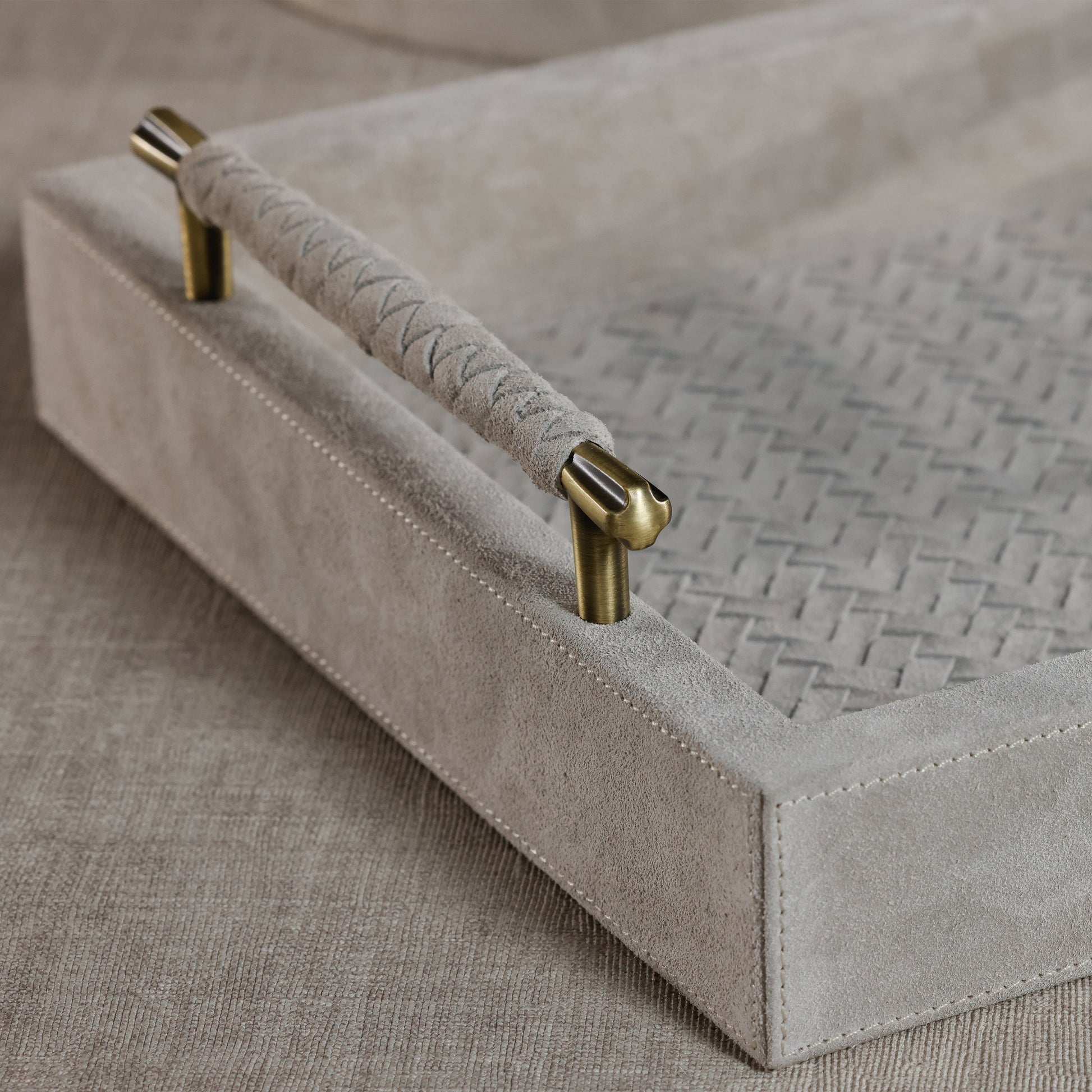 Arden Suede Leather Tray with Brass Handles