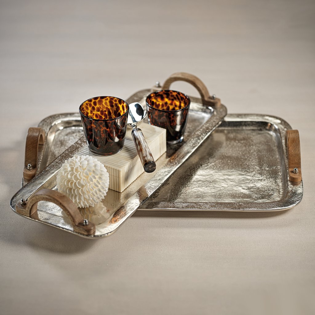 Barcelona Nickel Aluminum Tray w/Wooden Handles