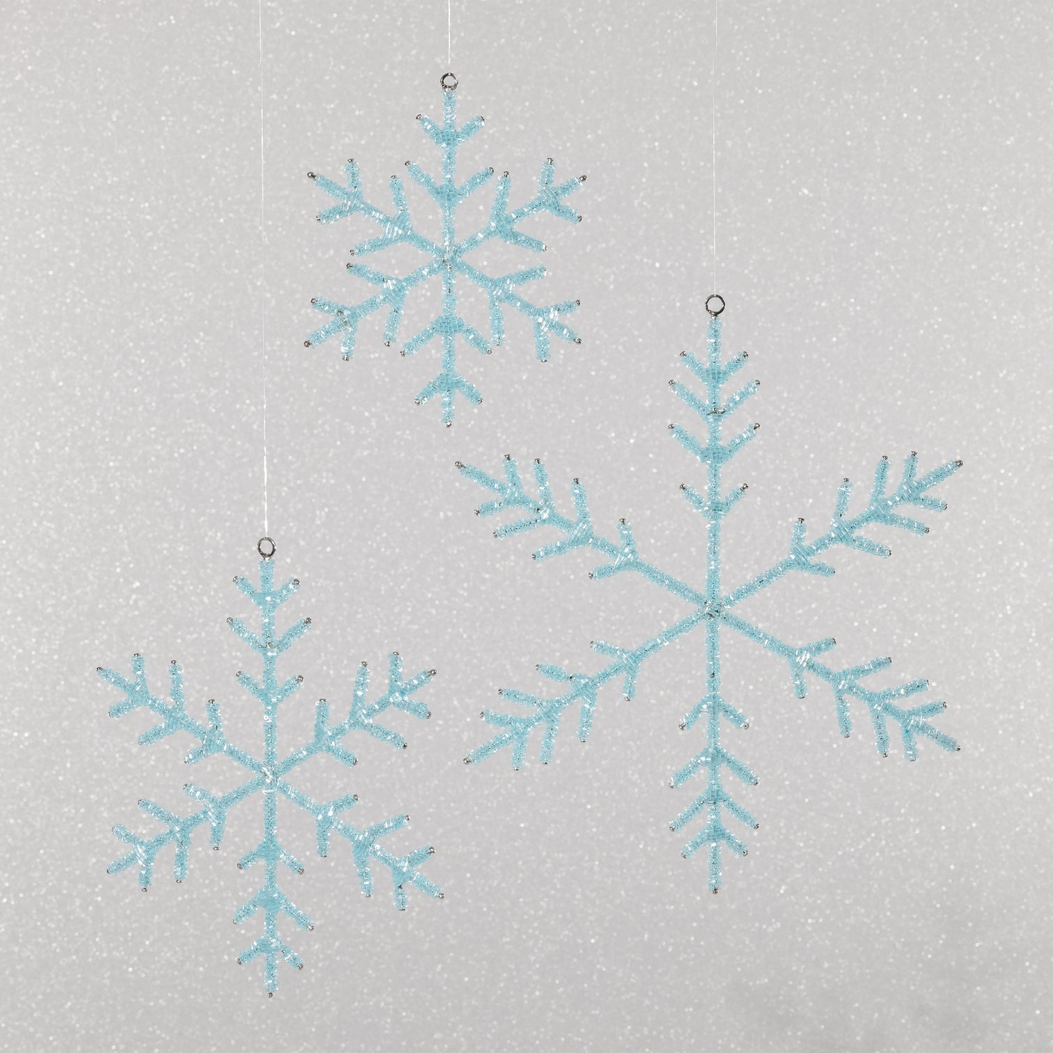 These beaded snowflake ornaments showcase meticulous craftsmanship with hand-applied beadwork that creates dimensional sparkle and refined visual interest. Each ornament is sold as a complete set of 12 per size, allowing you to coordinate your holiday décor with precision. The beaded construction provides durability and a sophisticated aesthetic that complements both traditional and contemporary styling. Available in multiple sizes, these ornaments offer flexibility for layering and creating depth across your seasonal displays. An investment in quality holiday décor that delivers lasting elegance.