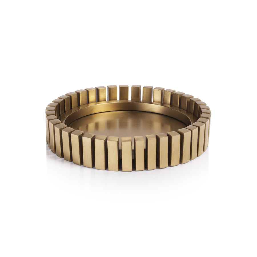 Modern and striking, this bottle coaster is crafted from durable stainless steel with a brushed brass finish. The bold geometric rim adds sculptural appeal, while the weighted design keeps your bottles steady and surfaces protected. A sleek statement piece for any bar or tabletop.