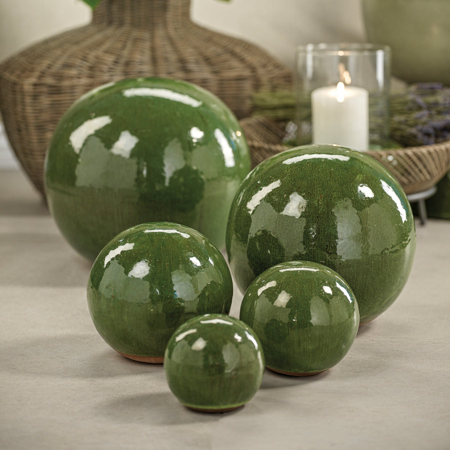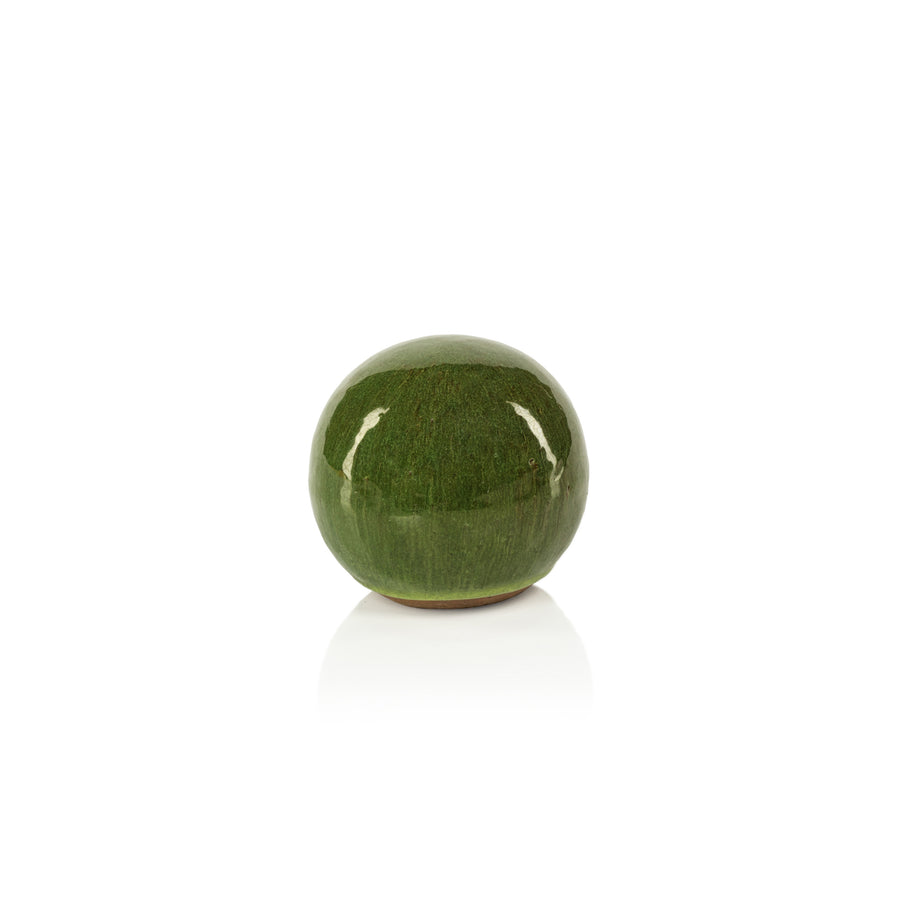 Enhance your space with the du-Rhône Green Glazed Stoneware Decorative Ball. Available in five sizes, this elegant accent piece features a rich green glaze that adds a pop of color and sophistication to any room. Perfect for styling shelves, tabletops, or creating eye-catching centerpieces.