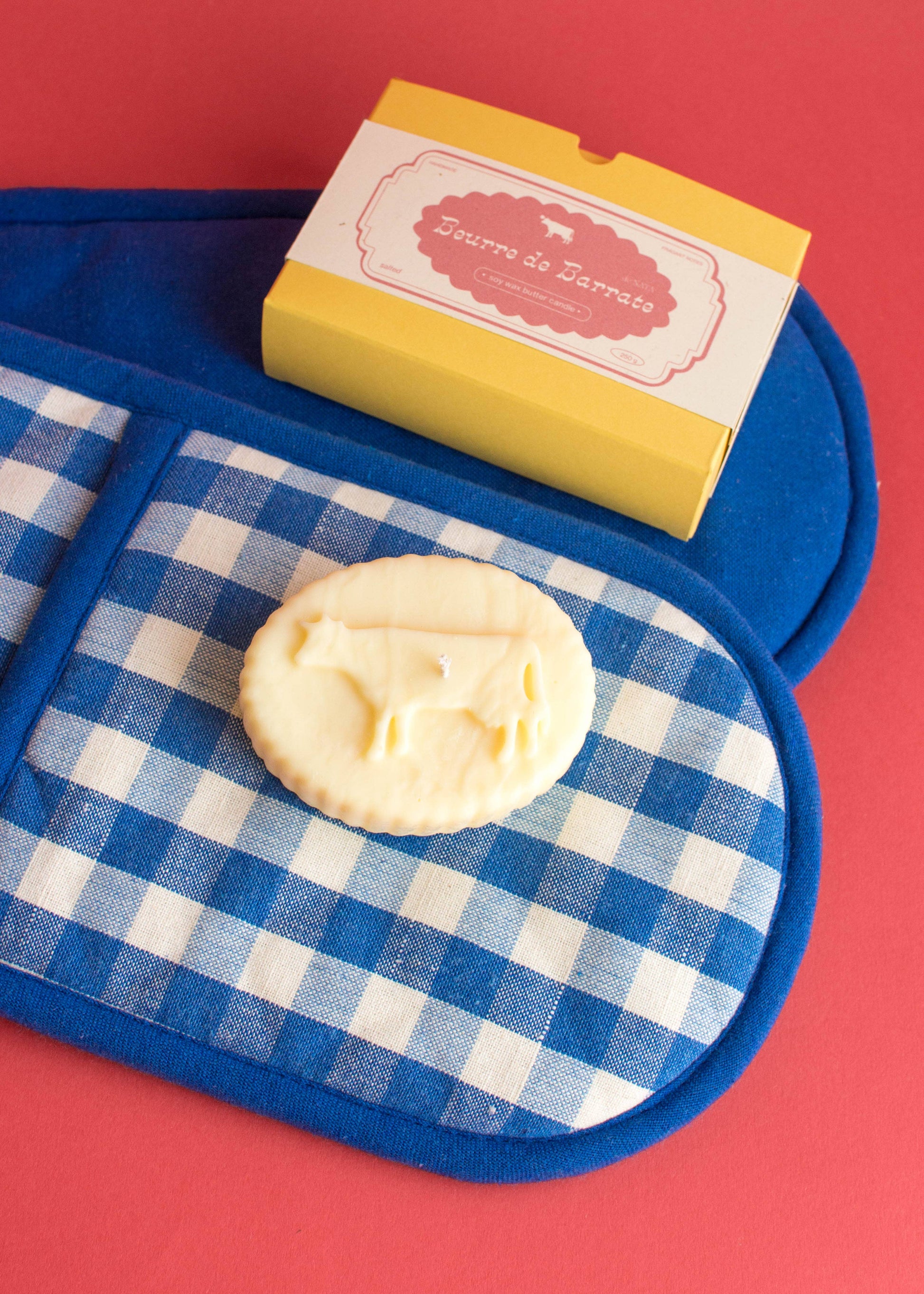 Indulge in french flair - with our french butter candle. The 'Beurre de Baratte' is traditionally churned french butter often made with engravings to celebrate the artisanal craftsmanship and heritage of its creation. Our candle features a cow engraving, a nod to its gourmet origins.