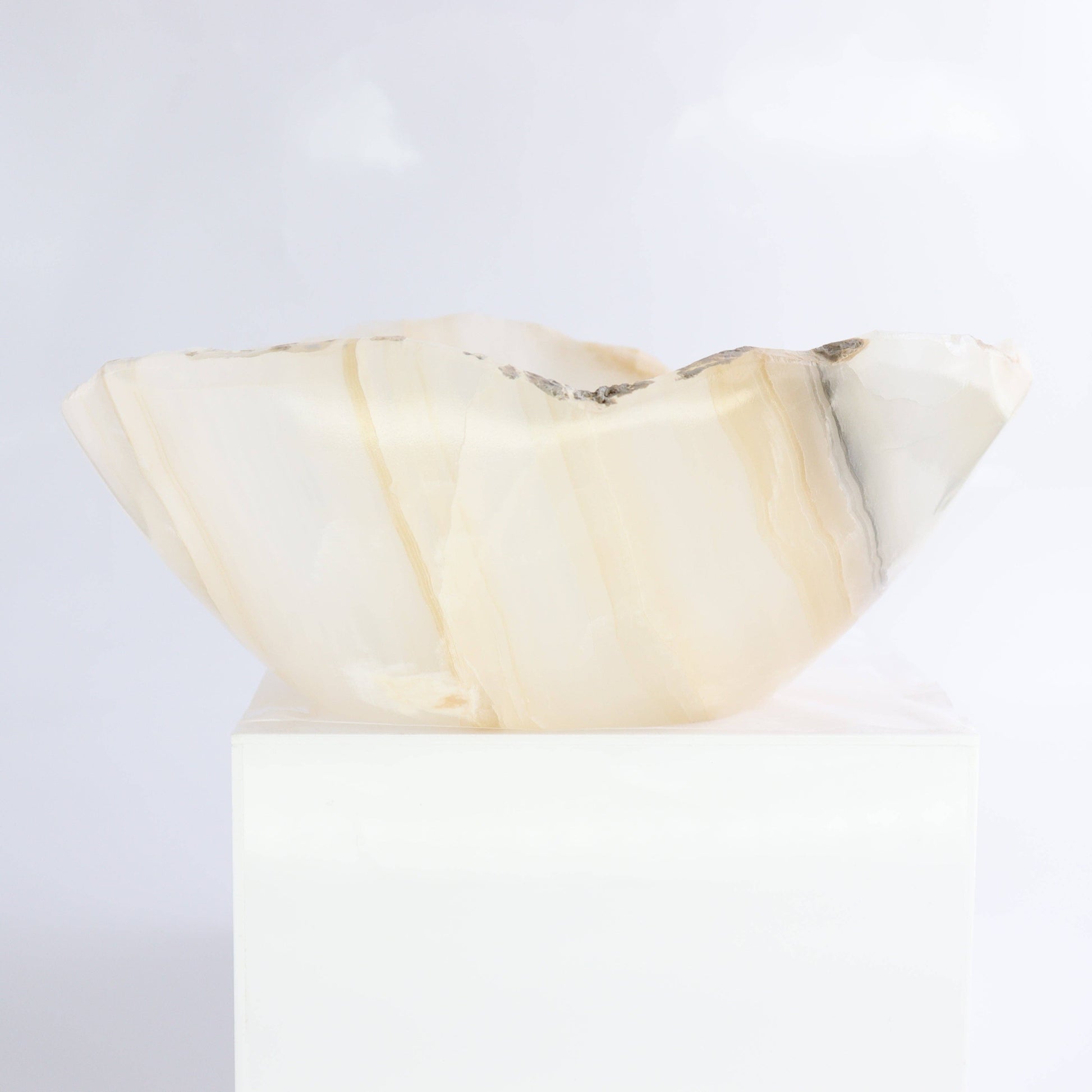 Elevate your decor with our Onyx Bowl, handcrafted from high-quality onyx in Mexico. Its elegant shape and unique color(s) add a touch of sophistication to any space. Perfect as a decorative accent; each bowl showcases the artistry of Mexican craftsmanship. The sleek, wide design makes it a versatile addition to both modern and traditional interiors. Enjoy the timeless beauty and artisanal quality of this exquisite piece.