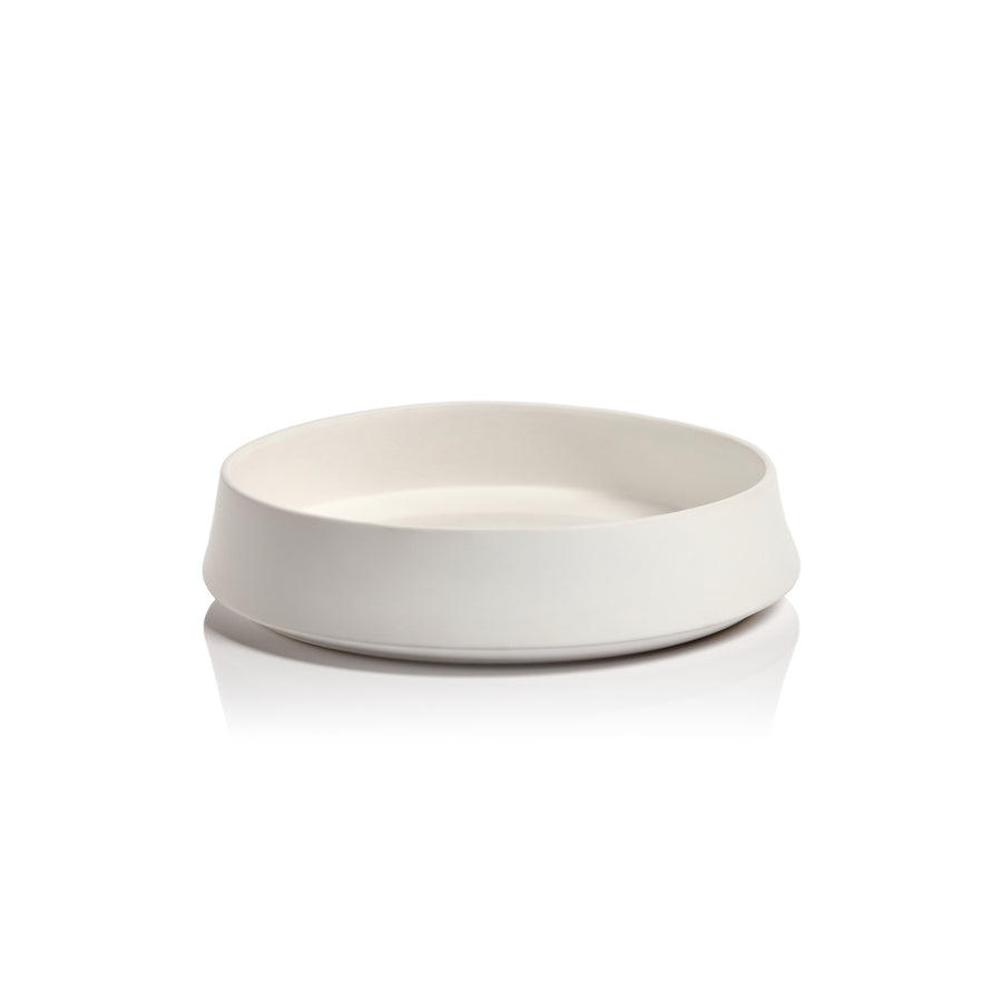 This is a minimalist and modern bowl with a clean, matte white finish. Its wide, shallow design and gently angled sides create a sleek, contemporary aesthetic, making it perfect for serving salads, fruits, or as a decorative centerpiece. This versatile piece is ideal for both casual dining and elegant table settings.