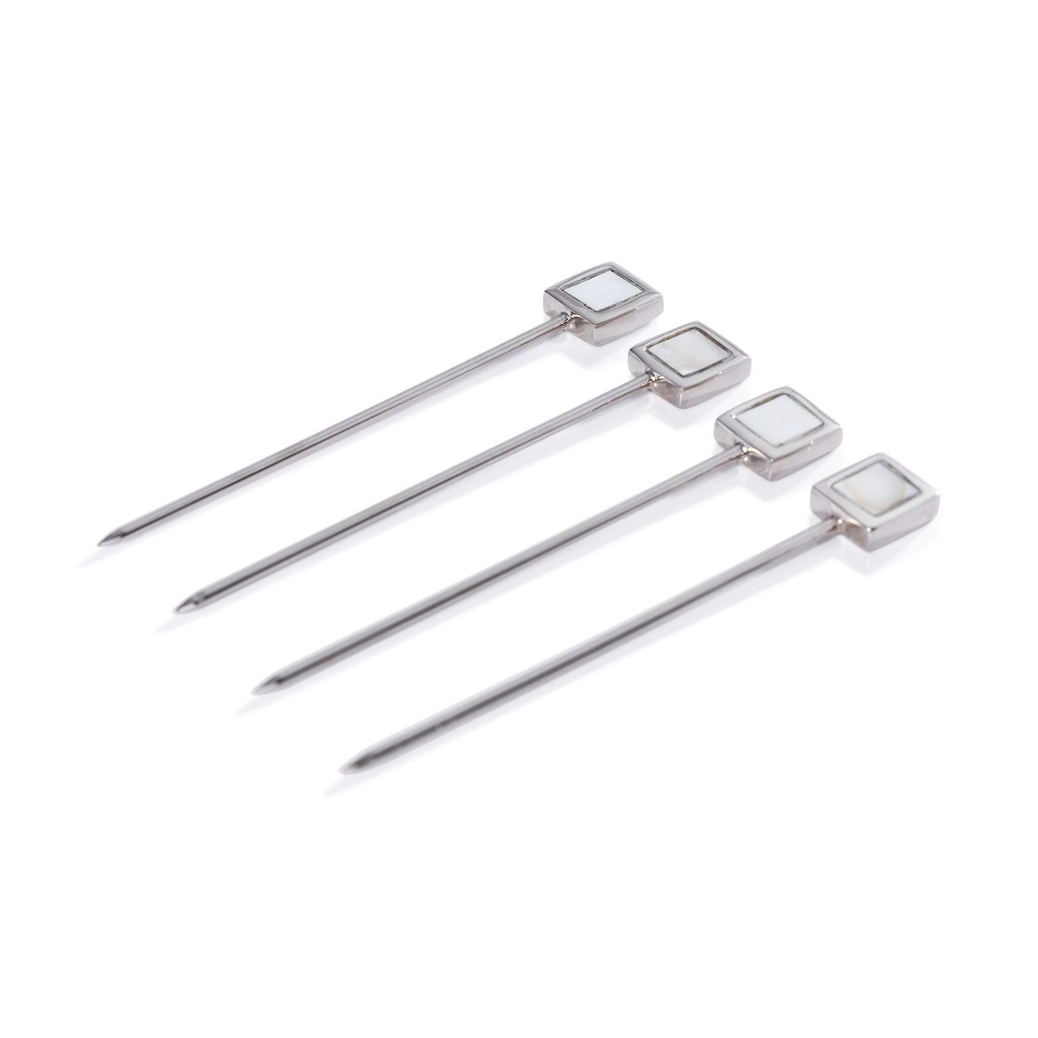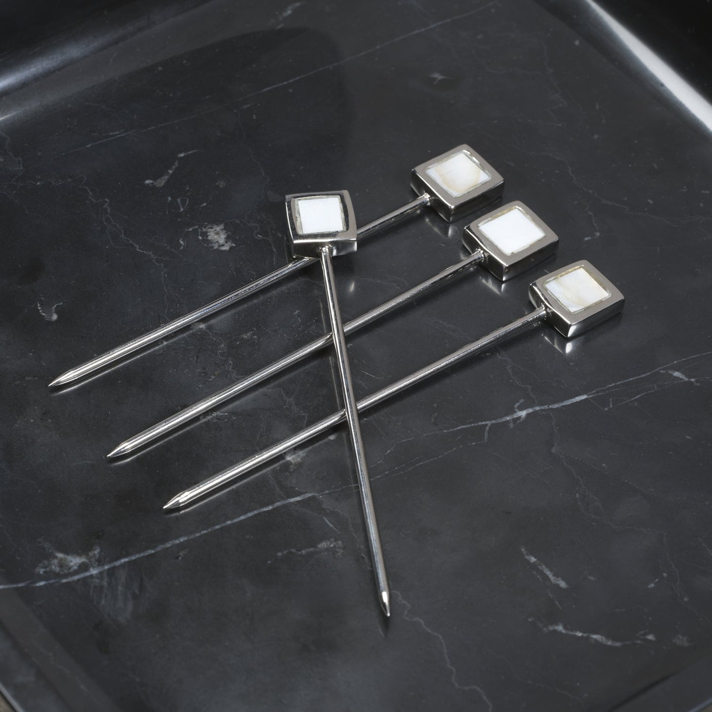 Spiga Set of 4 Cocktail Picks - Polished Nickel Metal with Mother of Pearl Accent