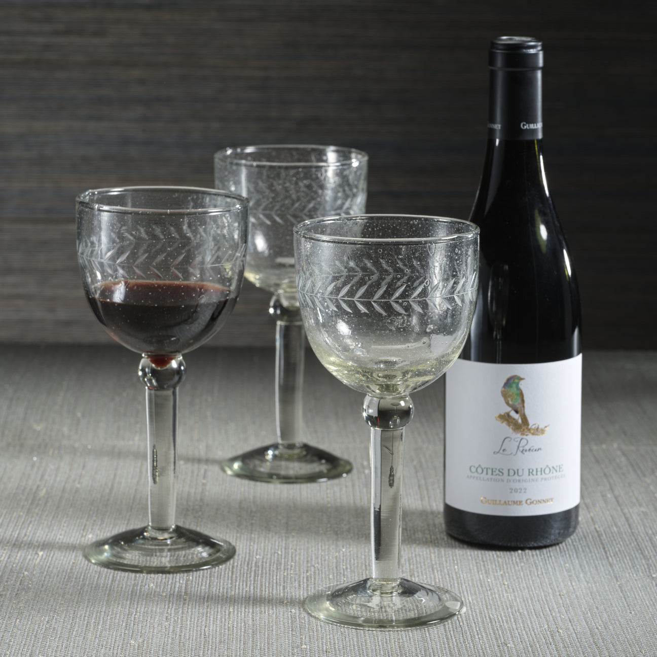 Experience the beauty and elegance of our Tuscan Handmade Etched Glass Wine Goblet, perfect for enhancing the flavors of your favorite wines and adding a touch of sophistication to any dining experience. Indulge in the perfect pour with our exquisite wine glasses.