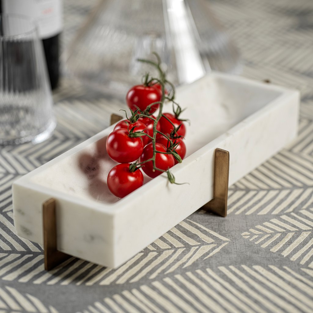 Elevate your décor with this sleek white marble tray, featuring clean lines and a smooth surface that exudes modern luxury. Supported by a minimalist gold metal base, it combines elegance with functionality, making it perfect for displaying decorative accents or serving small essentials.