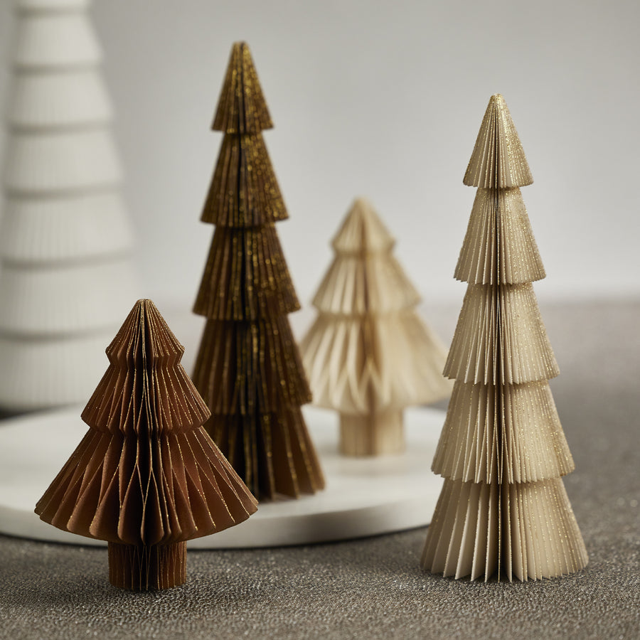 Bring natural charm to your holiday décor with these elegant gold paper decorative trees. Featuring an intricate accordion design and warm earthy tones, they add a minimalist and rustic touch to mantels, shelves, or tabletop displays. Lightweight, reusable, and easy to set up, they’re perfect for creating a cozy seasonal atmosphere.